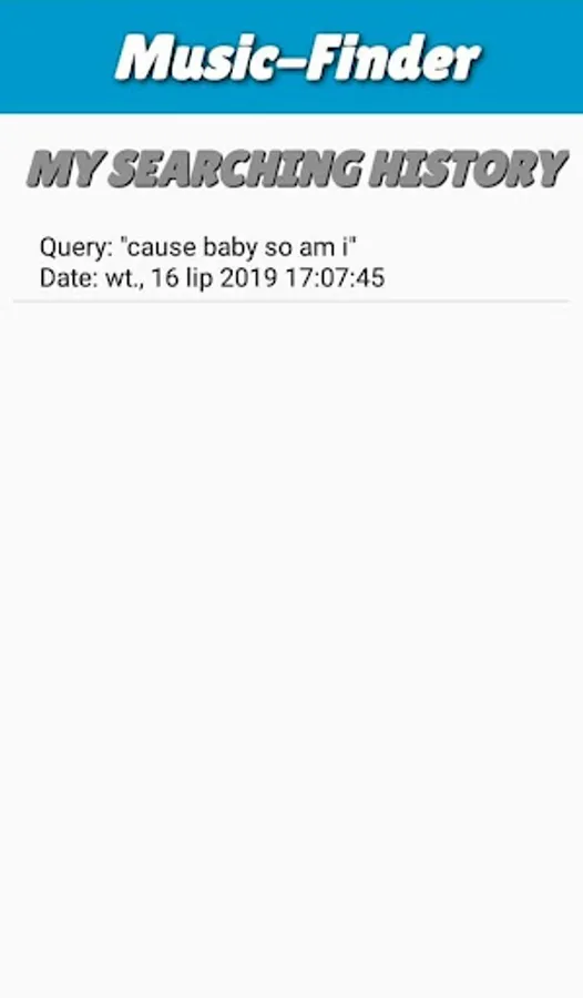 Music Finder is the app, that with fragment of lyrics, artist or title can find a song which you are looking for. App gives you a good access to lyrics and video clips of your songs, which you can store in one place, having all-time access to them.