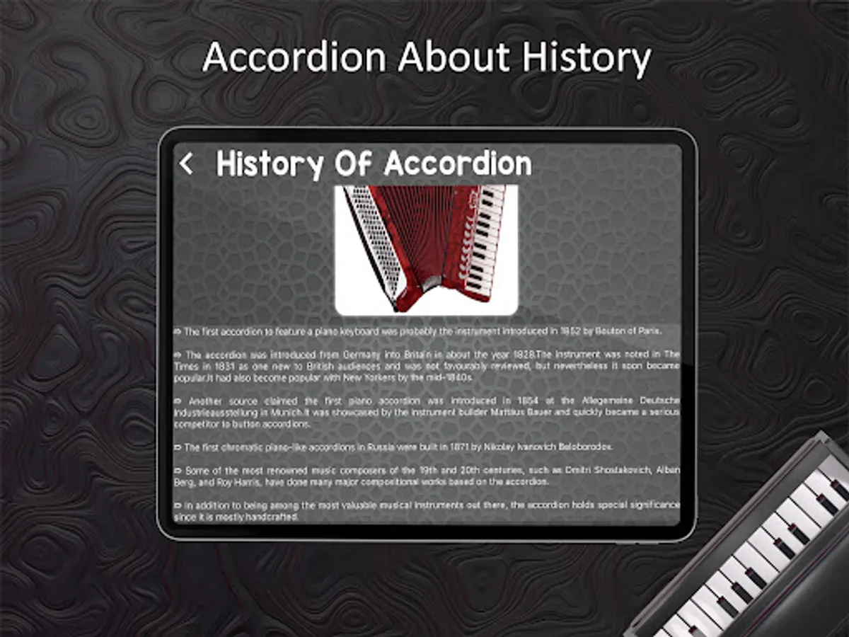 Built-in Songs and Lessons: Access a library of preloaded songs and interactive lessons to learn and master the accordion. From classic tunes to popular melodies, expand your repertoire and enhance your playing skills at your own pace.