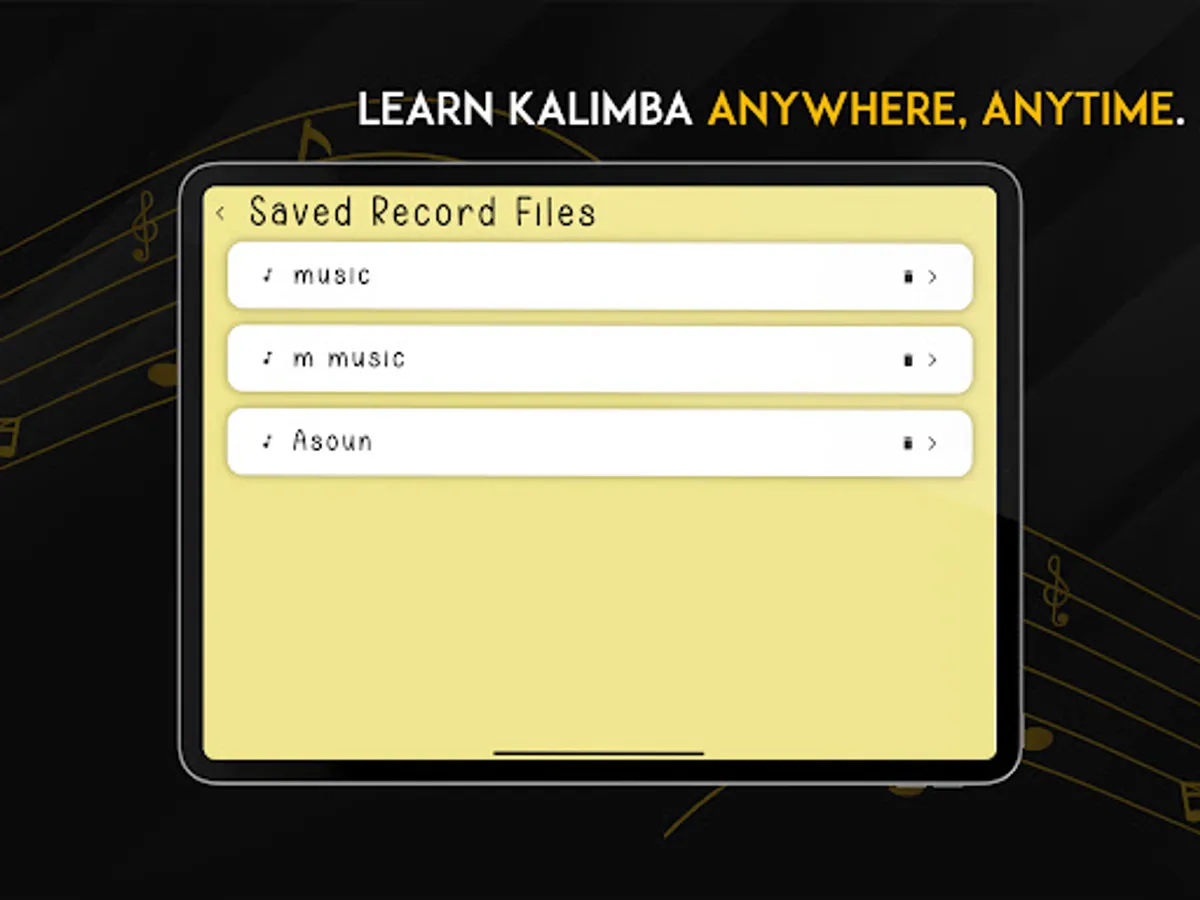 The app allows the user to tap on the tines with their fingers to create the same sound as if they were playing a real Kalimba.