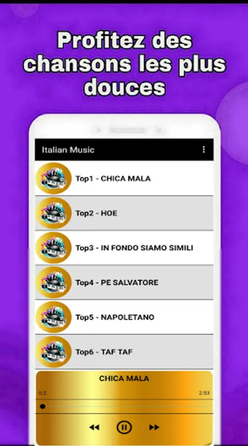 -L'application de chansons Italian sans Internet est une application qui regroupe toutes les chansons inédites et exclusives.