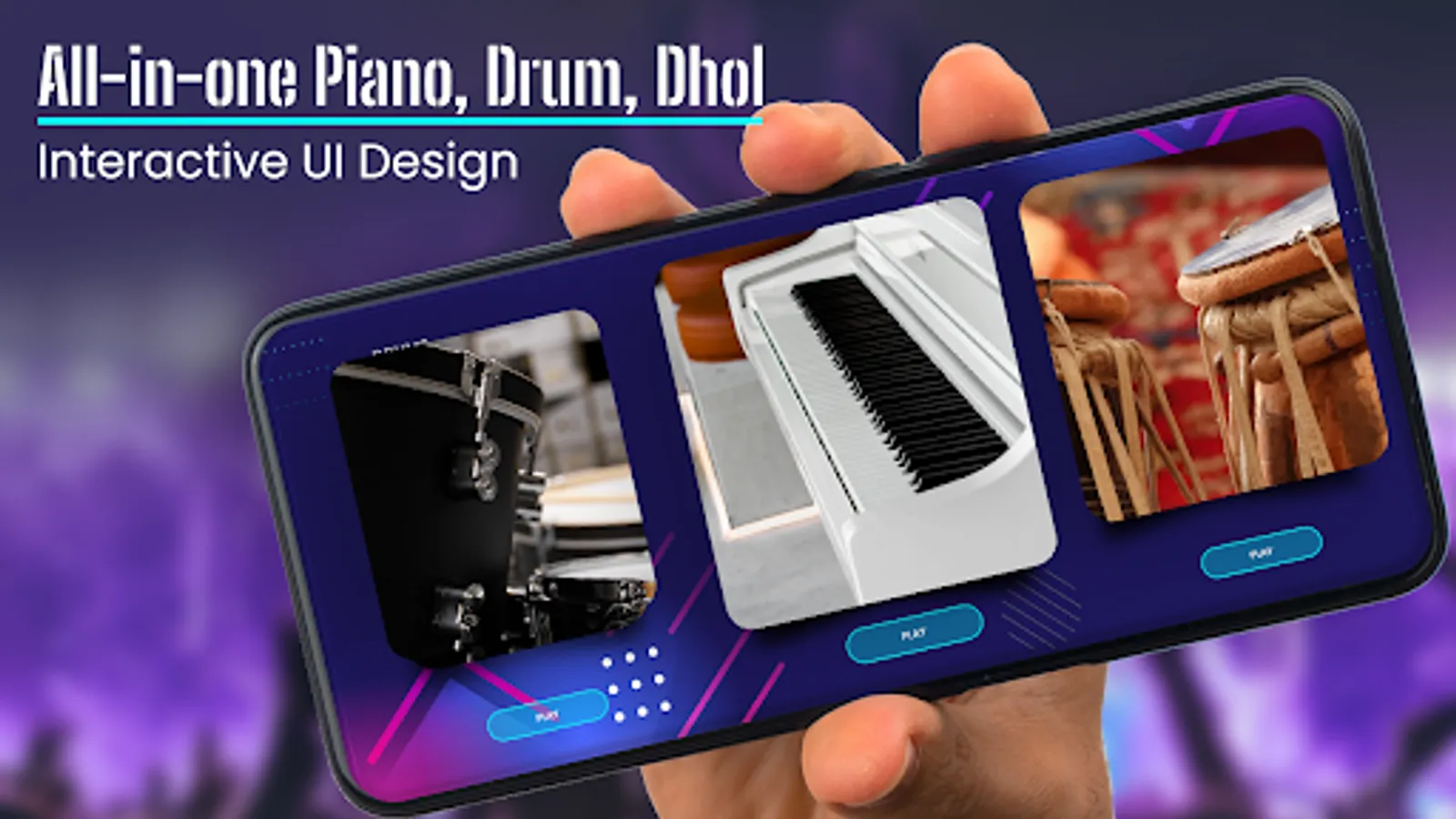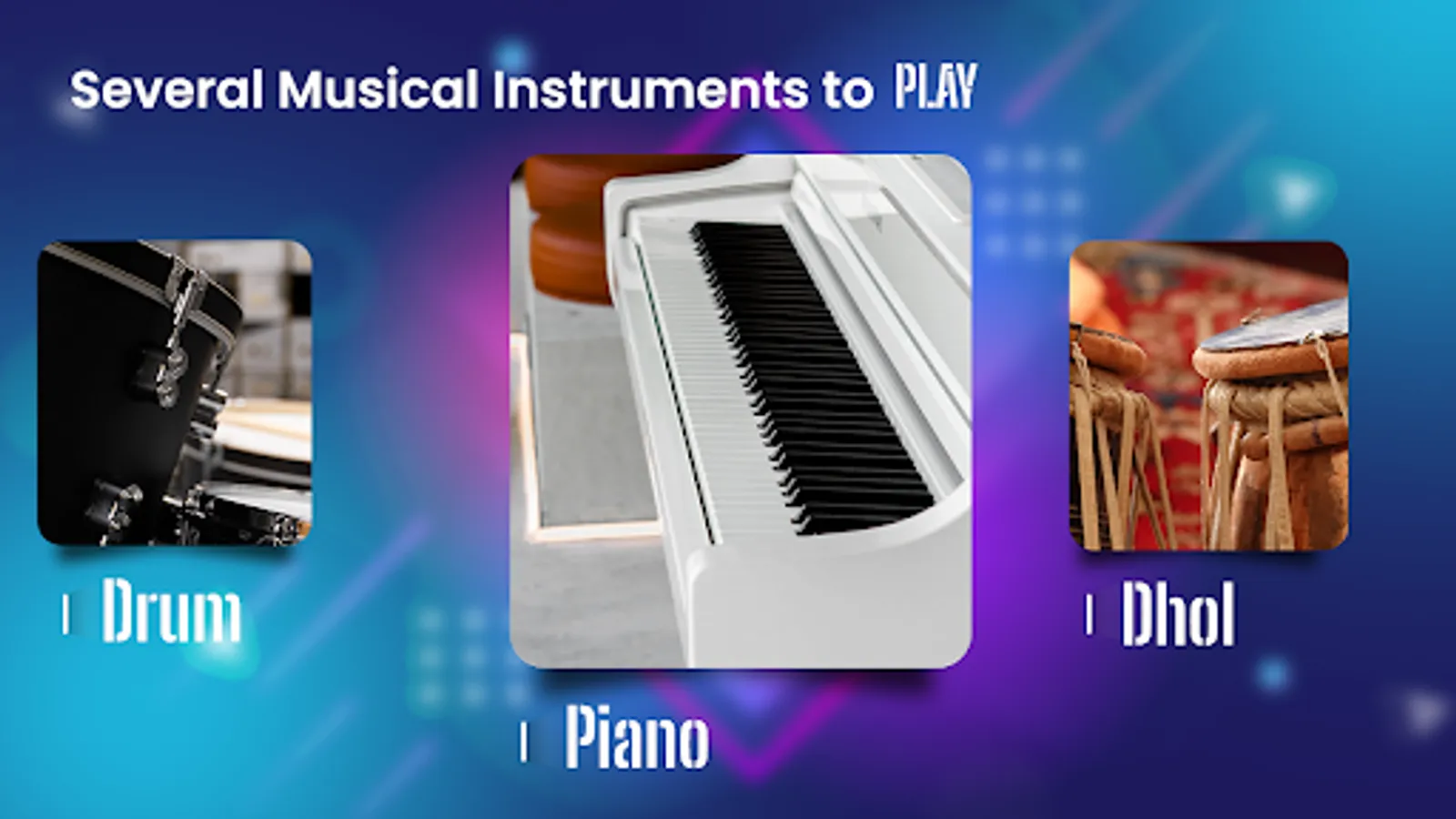 Record your tracks with music instruments playing app offline and show them to your friends later. Play music loud with headset for a superior experience. All-in-one Piano, Drum, Dhol is designed for everyone from beginners who want to learn musical instruments to advanced musicians that want expand its creativity in a portable music instruments app.