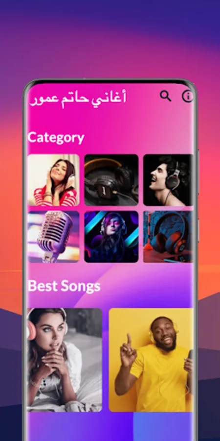 The application features a wonderful background and fast browsing, where you can listen to all of Hatem Amour's new songs with lyrics