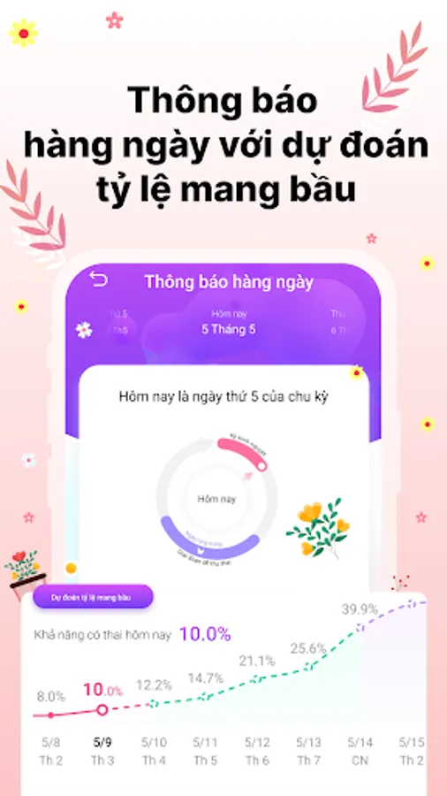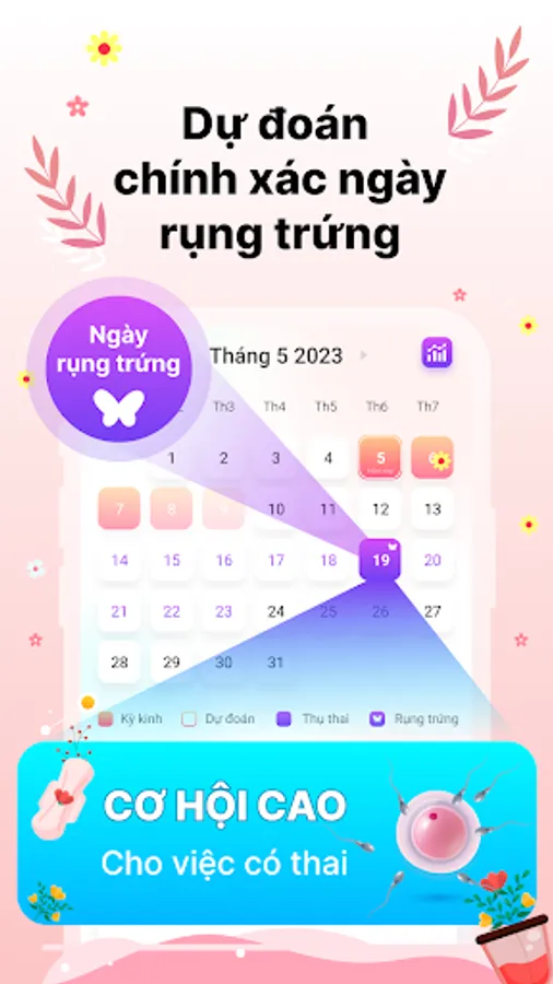 Fertility: The menstrual calendar app can also provide fertility information throughout the cycle. Based on the user's parameters and cues, the app will assess whether fertilization is likely to occur during specific days of the menstrual cycle. This helps users have more knowledge to manage family formation and choose effective contraception.