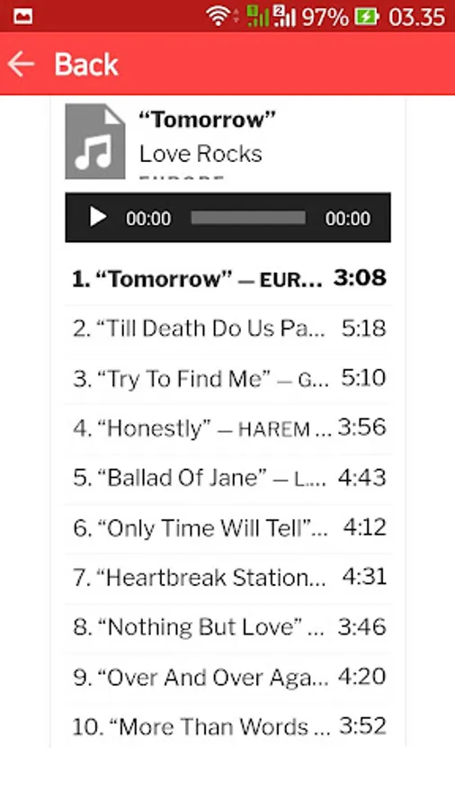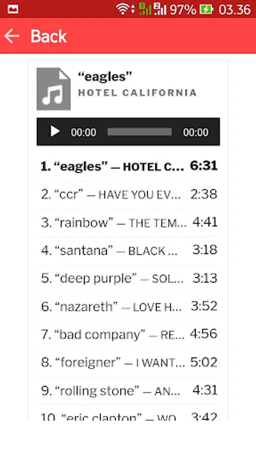 song list