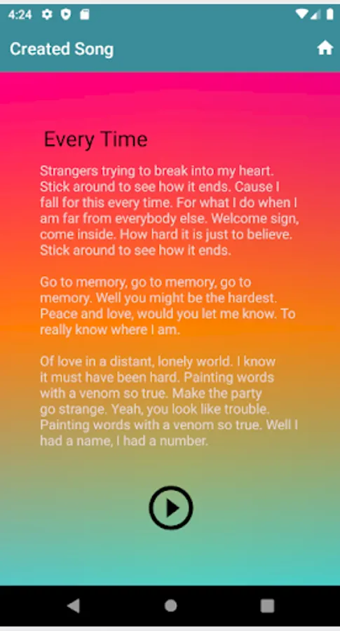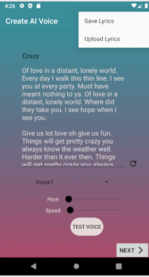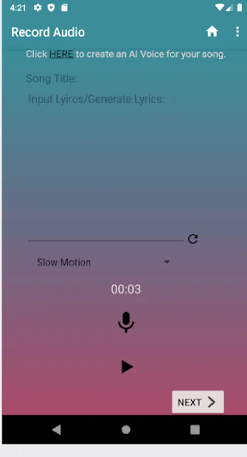 With Song Creator you can use many different features to create your own personal song. We offer 23 personalized beats to create your song with. Song Creator comes with recording features and over 10 different voice changing effects. You can also create your own personalized AI voice that will sing your created song for you. Song Creator also makes writing your own lyrics a thing of the past with Song Creators lyric generator. We also offer saved content libraries so that you can save all your created lyrics and voice recordings. With all the amazing features offered by Song Creator, the user is allowed to create a personalized song within minutes.
