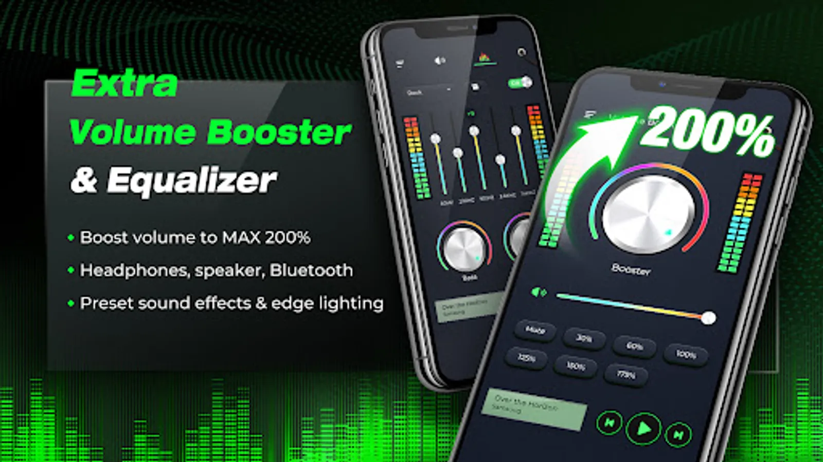 Extra Volume Booster Equalizer, an easy-to-use volume booster and equalizer + speaker booster + bass booster free with cool edge lighting , give yourself an immersive opportunity to listen to music of loud volume and high quality on your phone and tablet!
