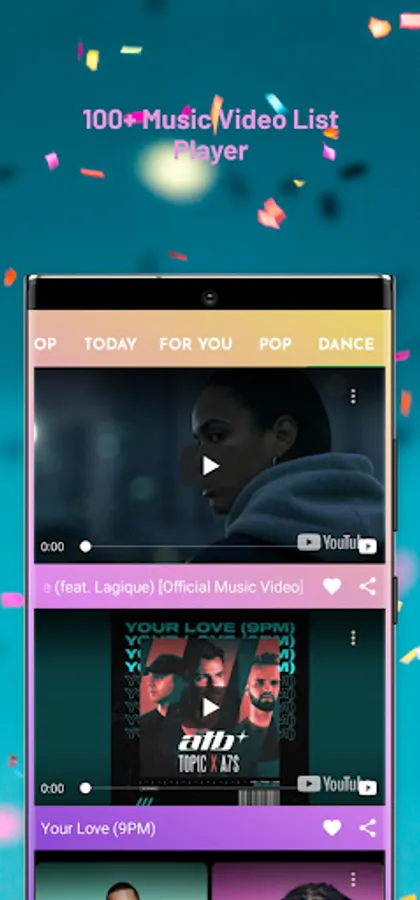 - Create your own favorite lists video music and listen to in queue