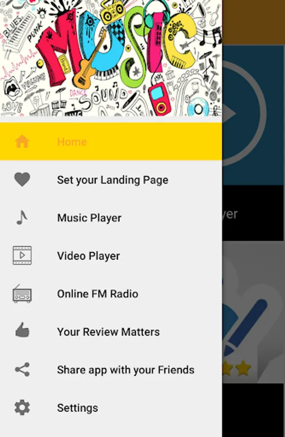 Awesome material design with multiple color options for Music Player, Video Player and online FM radio.