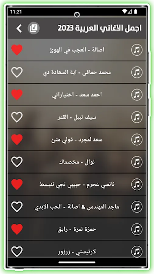 Many new and exclusive Arabic songs have been added for the year 2023 - 2024, and the list of Arabic songs has been carefully chosen so that they are the most famous and most listened to. Various Arabic songs 2023 without the Net. An application that contains the most beautiful and most listened to Arabic songs for the year 2022 - 2023 without the Net.