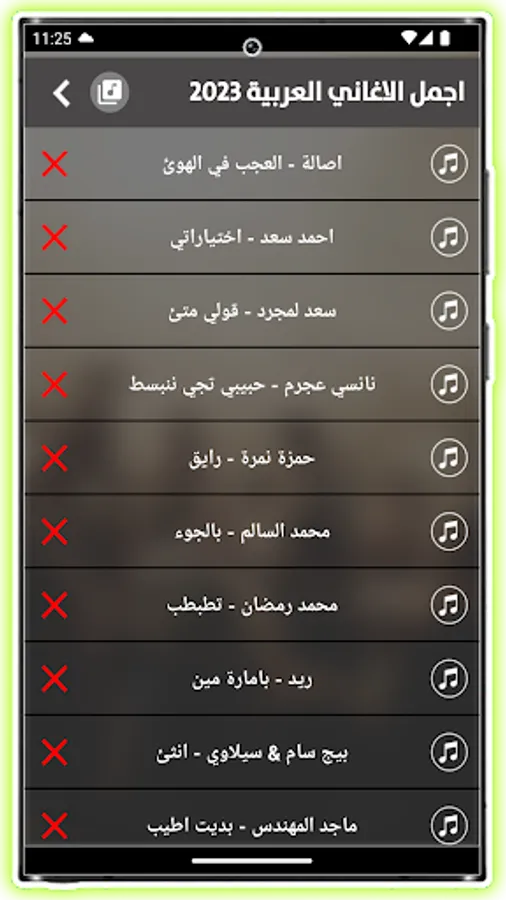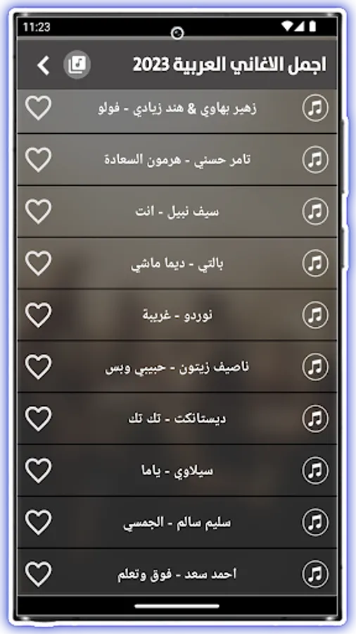 List of songs from the 100 Arabic songs 2023 application without the Internet: