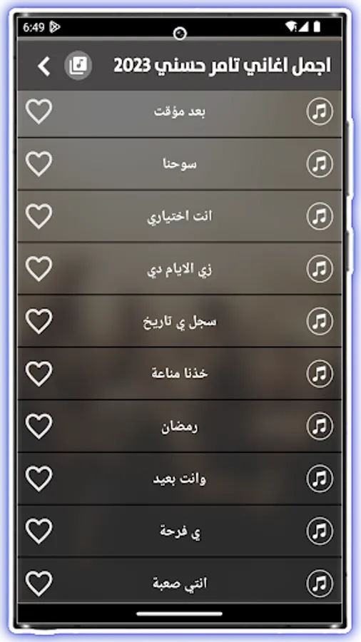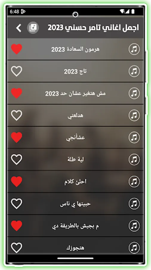 • The feature of adding Tamer Hosny's songs to the favorites list