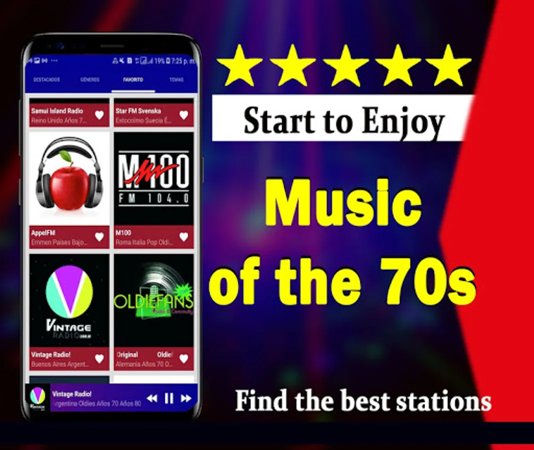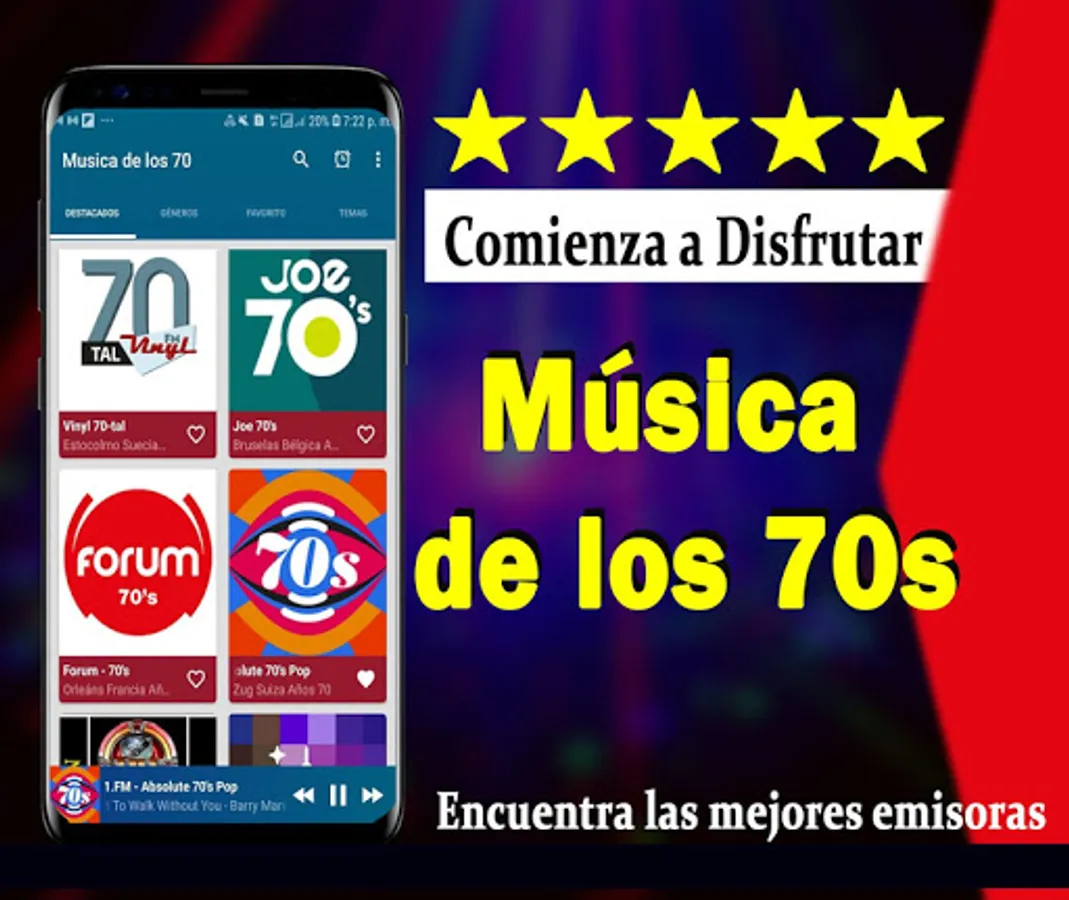 definitely this application is for you, because here you will find the music of the world's leading radio stations specialized in music from the 1960s, 1970s, 1980s and 1990s. You will not regret it! Music of the 70 radio hits is the perfect application for you music with a friendly and easy to use design where you will find.