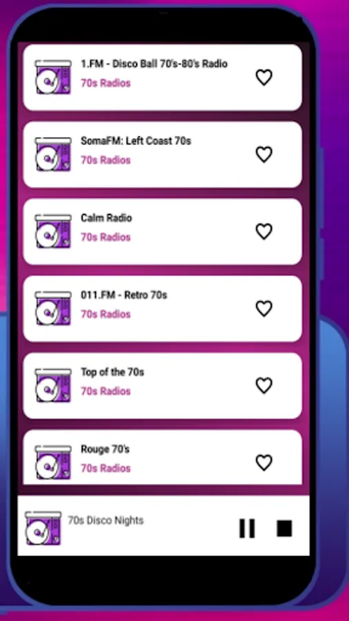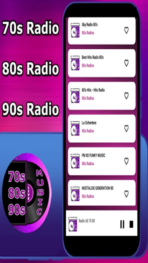 To facilitate the user experience we have organized the radios by categories among which you will find 70s radio music, 80s radio music, 90s radio music, disco music, retro music, oldies radios and some others. If you can't find your favorite radio or that music that made you travel to the past, you just have to write to us and we will try to add it.