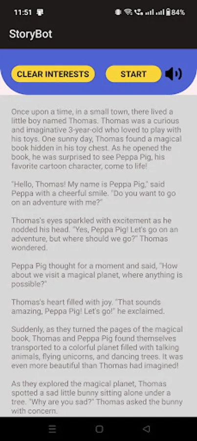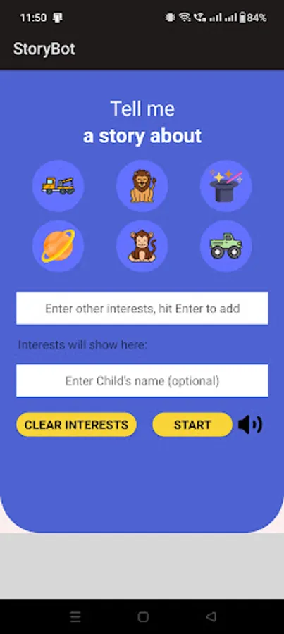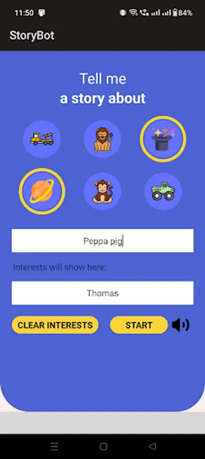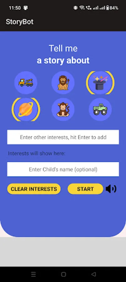 Now, use the power of AI to generate unlimited stories for your child! And what is better - You can make your child the star of the story. Enter any interests (e.g. Rockets and mouse) including characters from popular shows that your child enjoys, and get a new story for your child within seconds!