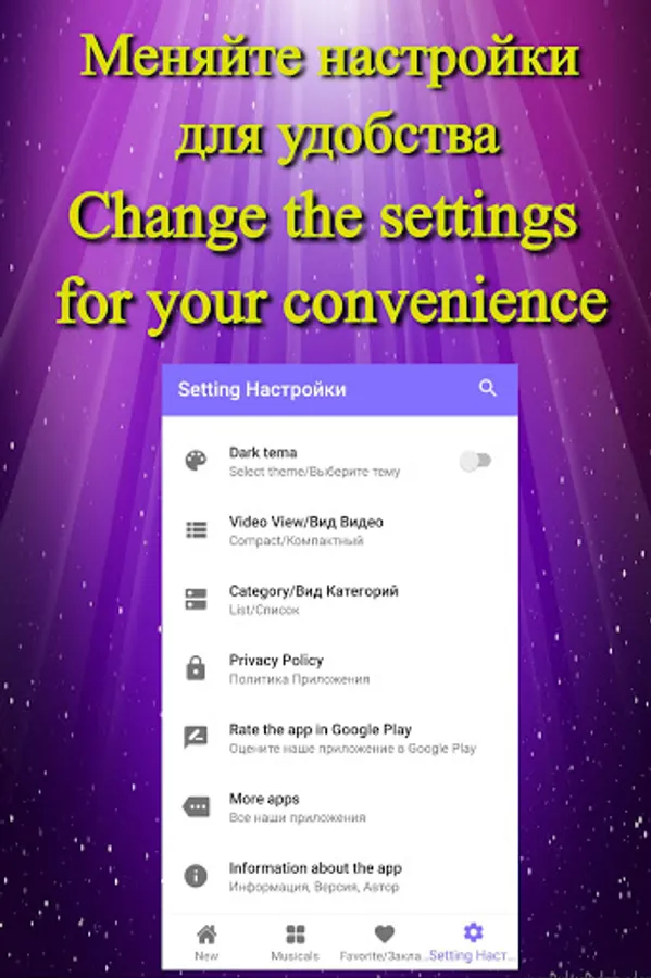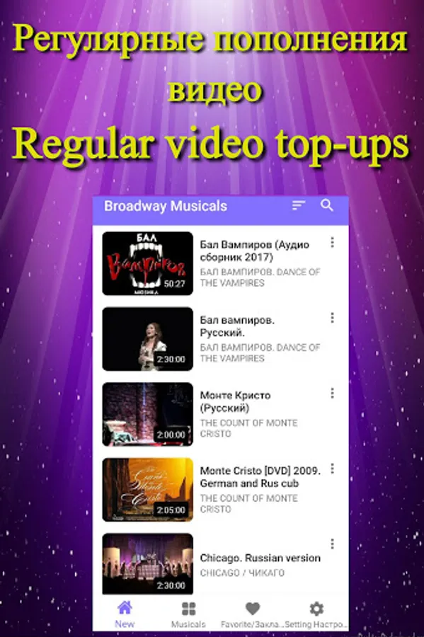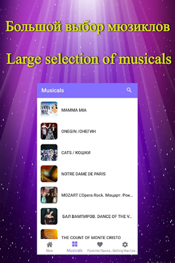 Download the app, watch famous musicals (rock operas, performances) and get bright unforgettable emotions!