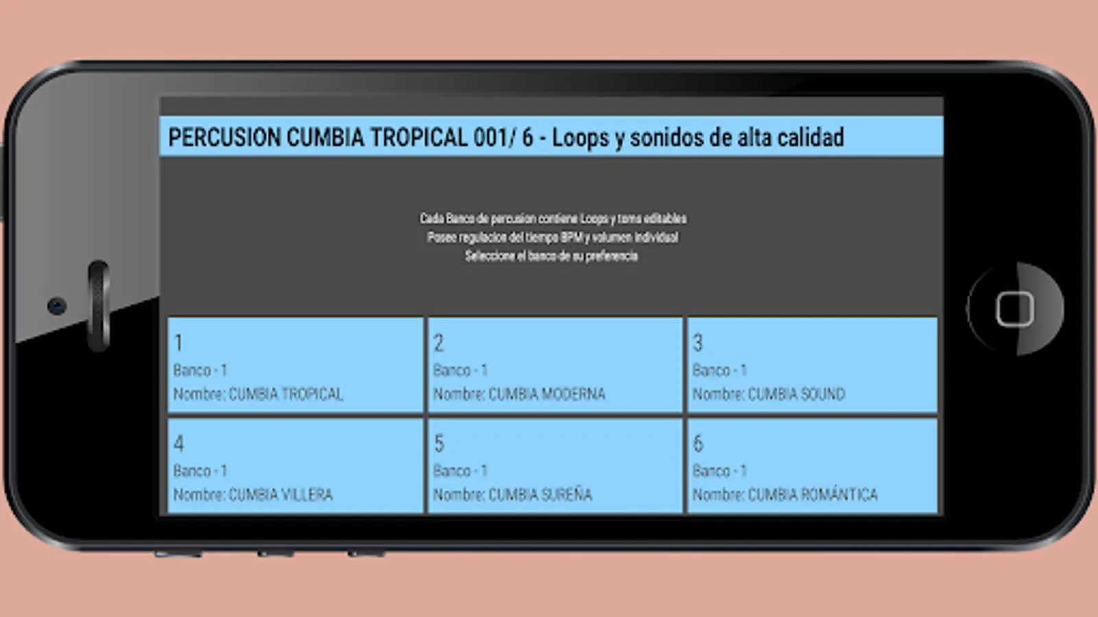 It is designed for everyone who likes the percussion of Latin cumbia, it has an easy and friendly interface for user navigation.