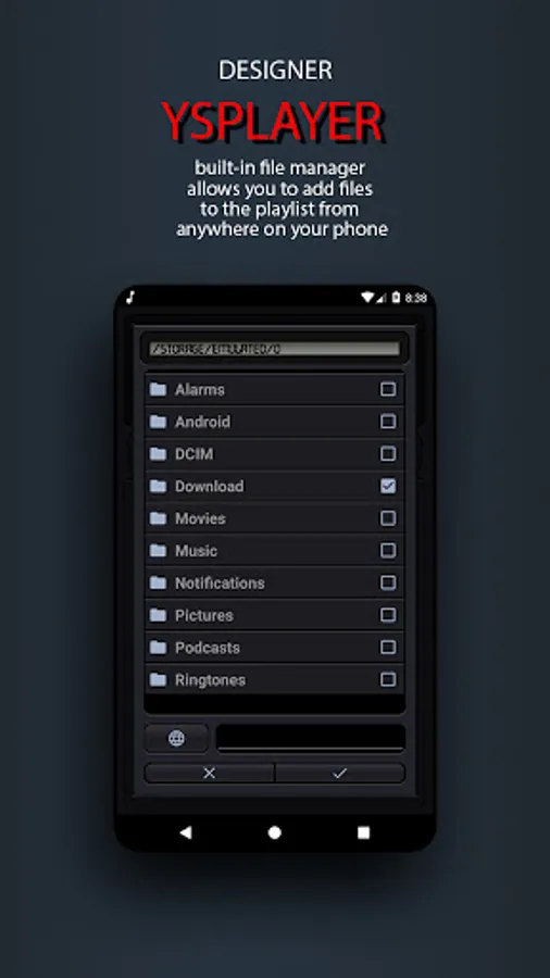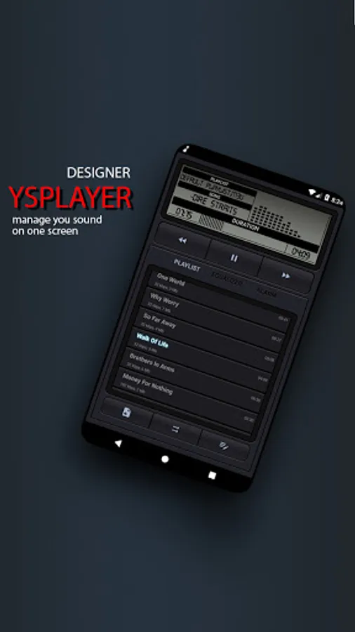 Music folder player full supports all formats of music and audio files, including MP3, MIDI, WAV, FLAC, AAC, APE, etc., and plays them in high quality.