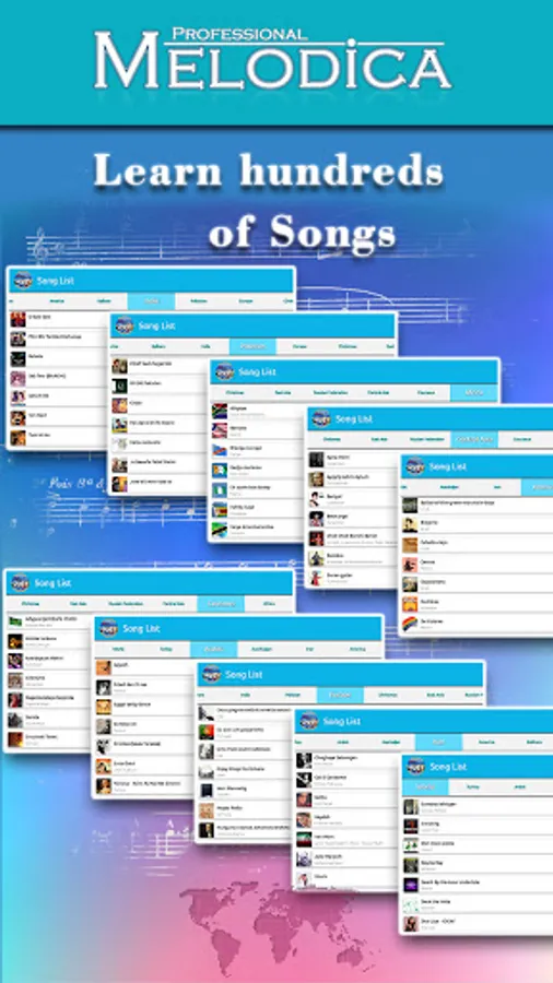 With the "Professional Melodica" application, you will be able to play hundreds of songs from all over the world and learn about different music cultures for "FREE".
