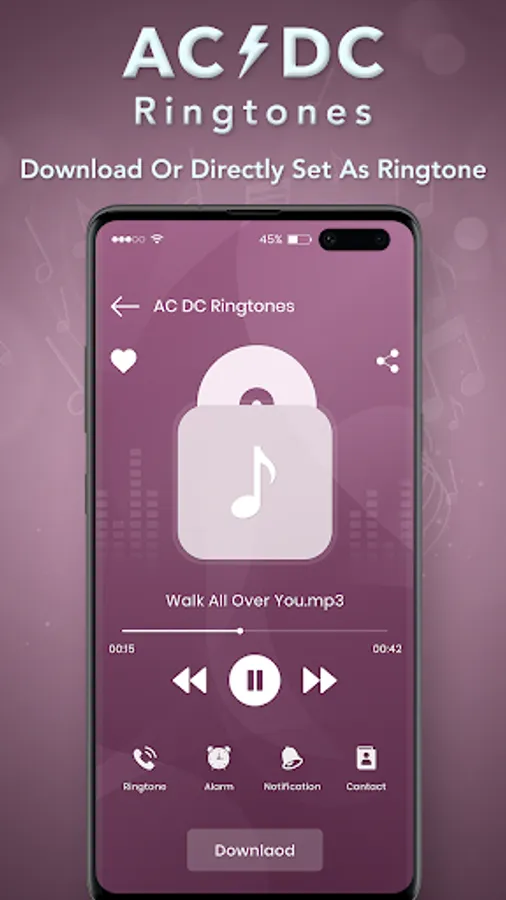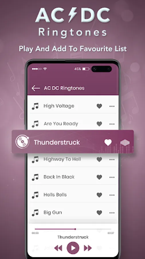 AC DC Ringtones app is the great collection of AC DC music as unique Ac Dc Ringtones which you can use as ringtone, notification tones, alarm tones, or assign to a contact directly and much more.