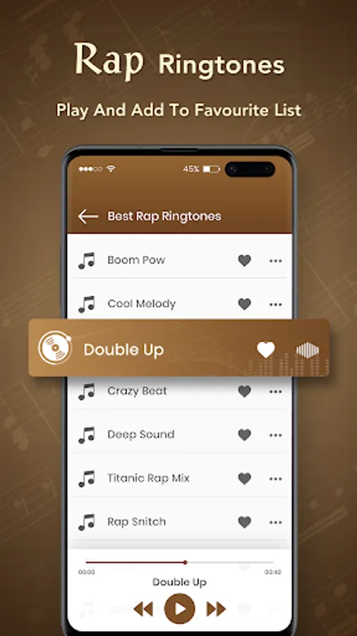 Rap Ringtone app is the great collection of Rap song as unique Rap Ringtones which you can use as ringtone, notification tones, alarm tones, or assign to a contact directly and much more.