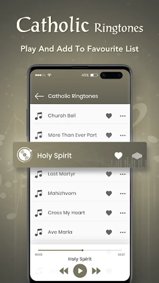 Catholic Ringtone app is the great collection of Christian music as unique Catholic Ringtones which you can use as ringtone, notification tones, alarm tones, or assign to a contact directly and much more.