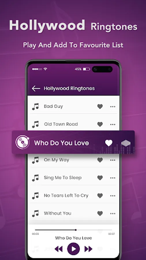 Hollywood Ringtone app is the great collection of Hollywood music as unique Hollywood Ringtones which you can use as ringtone, notification tones, alarm tones, or assign to a contact directly and much more.