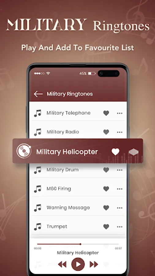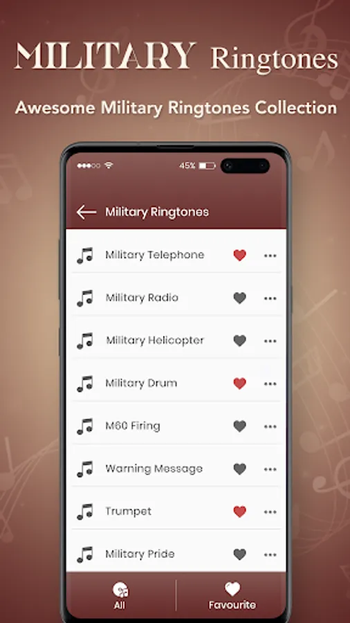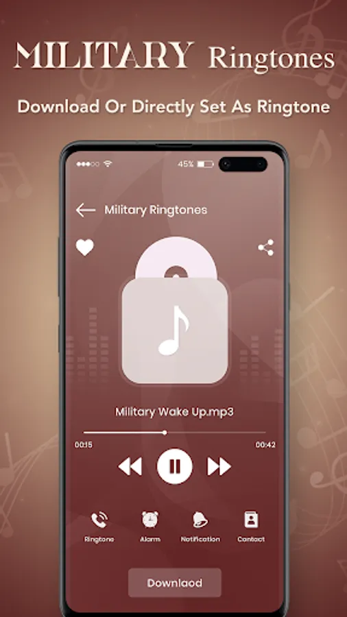 Military Ringtones app is the great collection of Military music as unique Military Ringtones which you can use as ringtone, notification tones, alarm tones, or assign to a contact directly and much more.