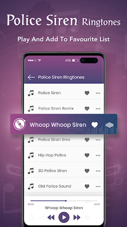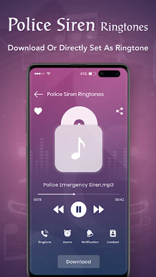 Police Siren Ringtone app is the great collection of Police Siren music as unique Police Siren Ringtone which you can use as ringtone, notification tones, alarm tones, or assign to a contact directly and much more.