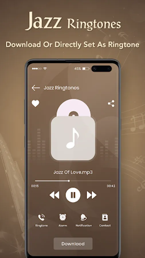 Jazz Ringtone app is the great collection of Jazz music as unique Jazz Ringtones which you can use as ringtone, notification tones, alarm tones, or assign to a contact directly and much more.