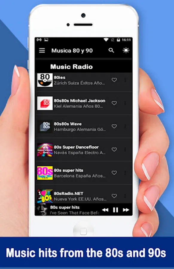 Music of the 80s and 90s Radio Live is an application that allows you to listen to hits music from the 80s 90s Internet radio apps of all retro music of the 80s and 90s helps you listen and enjoy talk shows, and other programs of your artists for music 80 90 radio live.