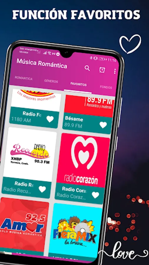 Enjoy the new trend of Romantic Music in Spanish and online radio, with our Free love music app, you just have to download the application and start enjoying all its content. With the best Romantic radio stations.