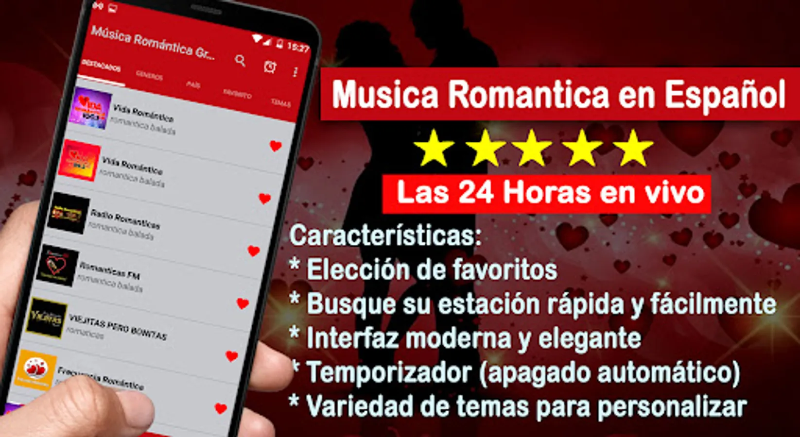 Romantic Music in Spanish radio live and listen to your favorite stations and enjoy your radio broadcasts 24 hours a day live only yesterday's hits music romantic ballads radio app has for you.