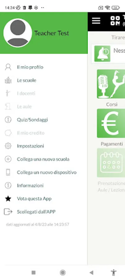 Through the Smartphone app, teachers manage their own calendar, enter attendance, send communications and receive notifications; they have access to the history of the hours worked and the fees accrued.