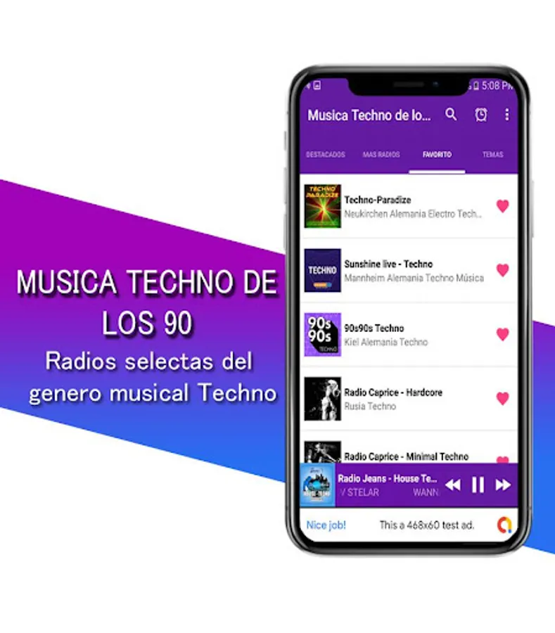 Music Tecno delos 90 to enjoy your techno music app radios of the different performers of the genre and the best of techno radio that transmit live.