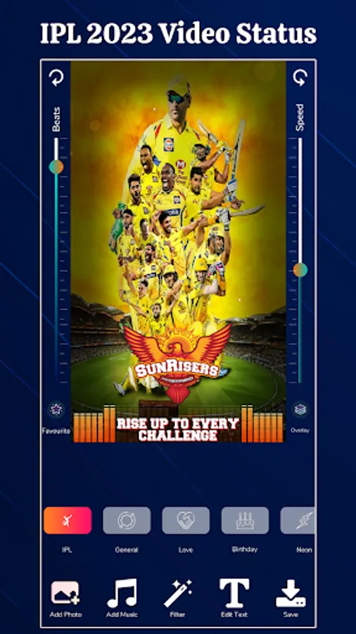 This video maker have support and cricket fan wishes his team RCB, MI, CSK, DC, KXIP, KKR, RR, SRH and create slideshow video for social media like WhatsApp, Facebook, Instaa or many more. share your 11 player team member and create your dream fulfill with circle fantasy player and clear your video for status related.