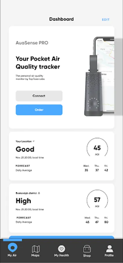 AuaSense is a cutting-edge solution designed to help individuals, organizations, and communities monitor and address air pollution issues in their local environments. This user-friendly app provides real-time updates on the air quality in your area, as well as alerts and notifications when air pollution levels reach dangerous levels.