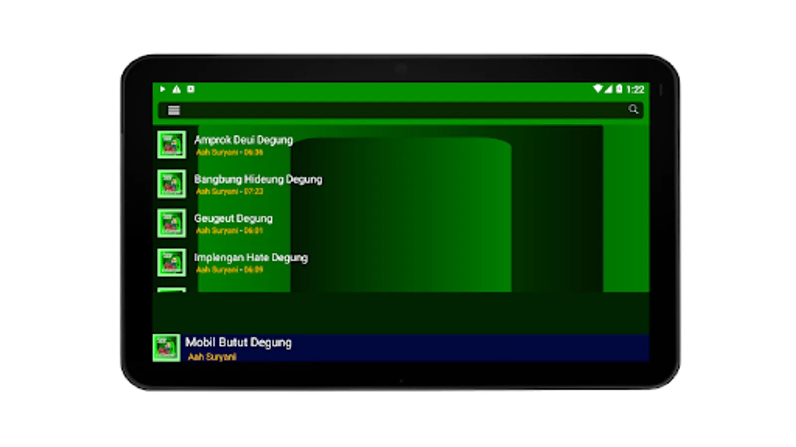Application for a collection of songs from Aah Suryani Degung Sunda - Mobil Butut, Renggong Buyut, Bangbung Hideung, Amprok Deui, etc. The sound and music quality of the MP3 application is very good.