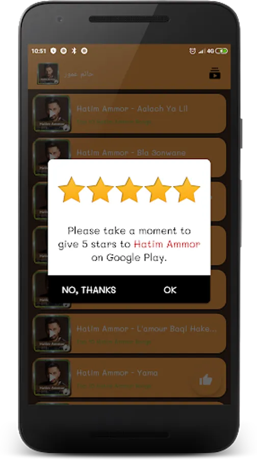 We hope that Hatem Amor songs without internet application will enjoy your liking. Do not forget to evaluate the application, thank you