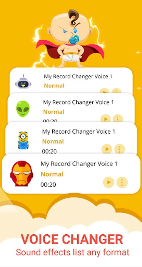 The funny voice changer app is the mix of voice recorder and editor! It offers different modes and pretty funny voice changer for kids and adults. Start record voice to prank people around you