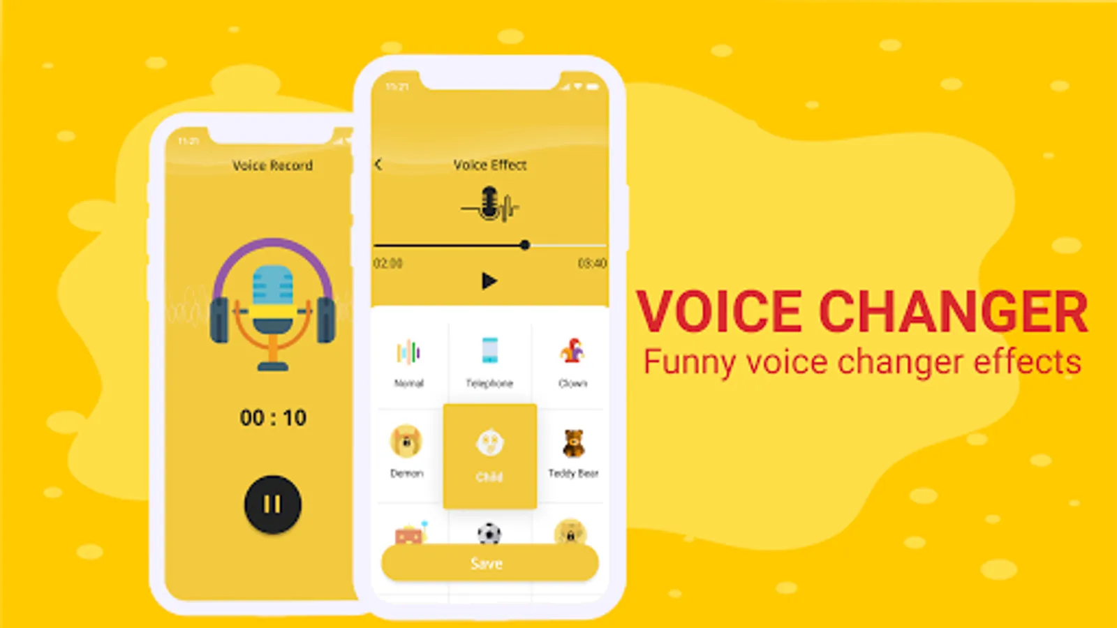 Record your voice, apply effects, and share them with your friends.