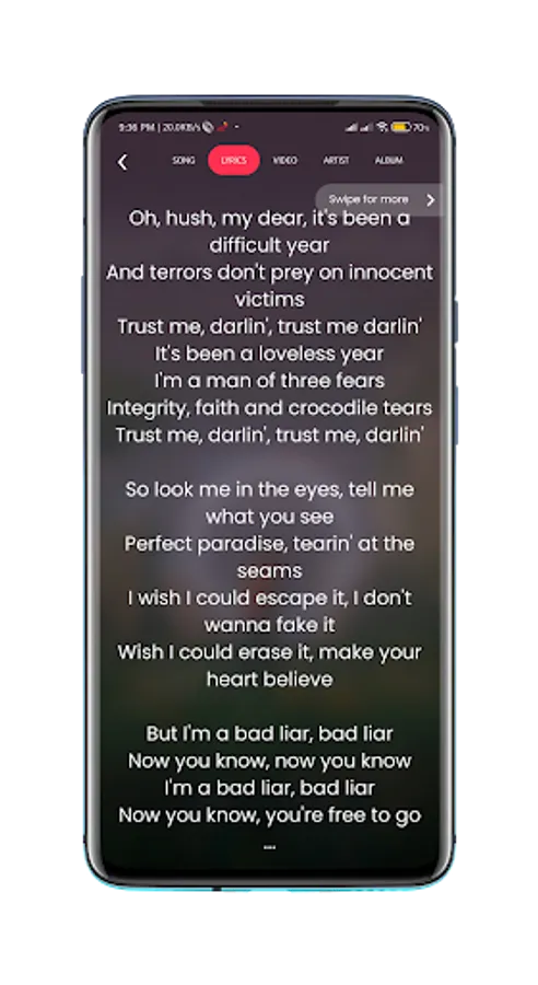 With the Music Finder app, you can explore lyrics from the identified song artist.