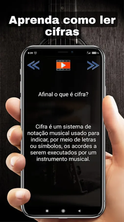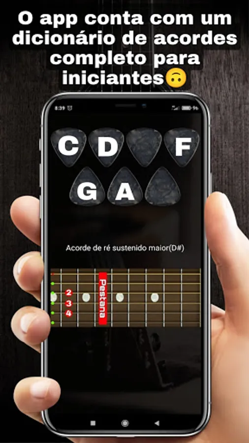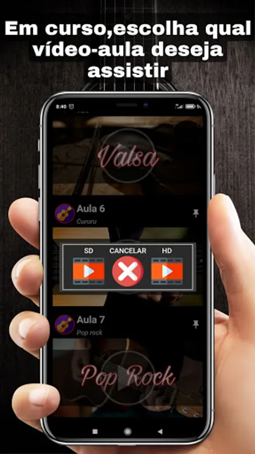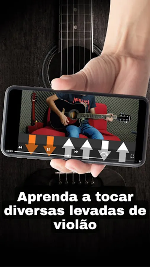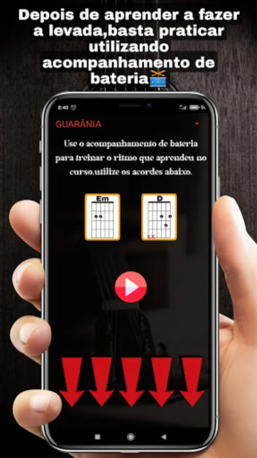 In the app you will have a mini guitar course with explanatory video lessons, teaching everything from how to tune the instrument, how to play various grooves, such as pop rock, Waltz, Guarania and others, the grooves have drum accompaniment audios to help. so don't miss the beat, the app also has a chord dictionary for you to practice whenever you want.