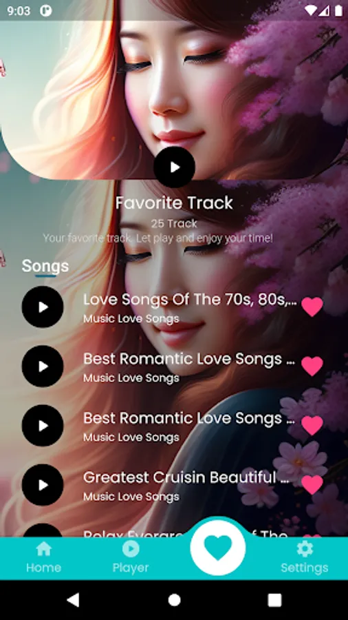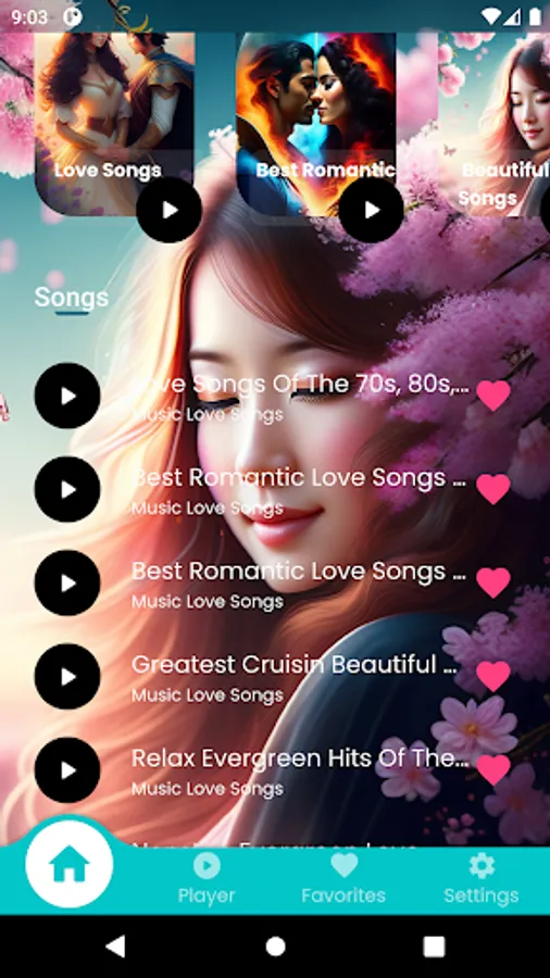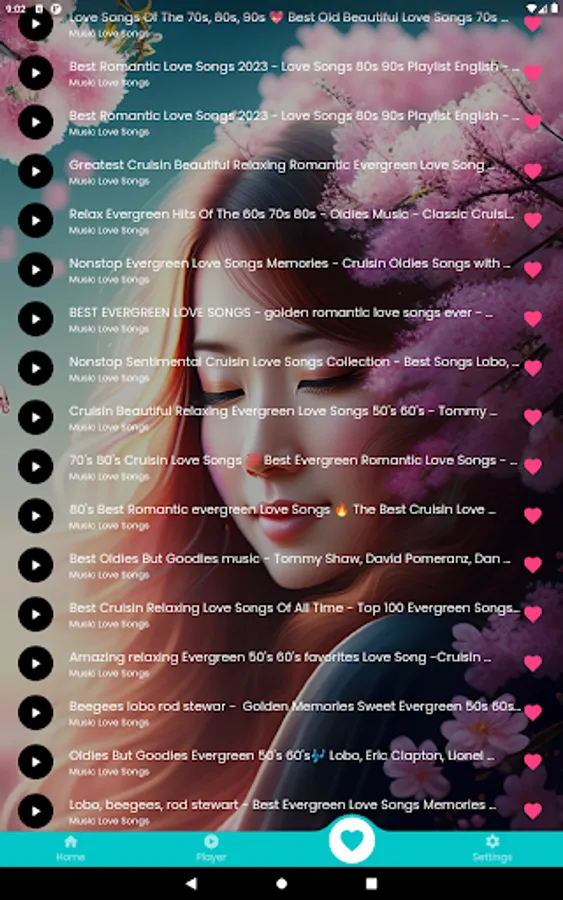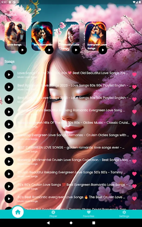 Music Love Songs is a list of love songs carefully selected and compiled from many different genres of music, including classics and latest hits from top artists. This list provides music lovers with sweet, romantic and emotional music, helping them relax and enjoy romantic moments with their loved ones. The songs are intelligently arranged and customizable to suit each person's musical taste.