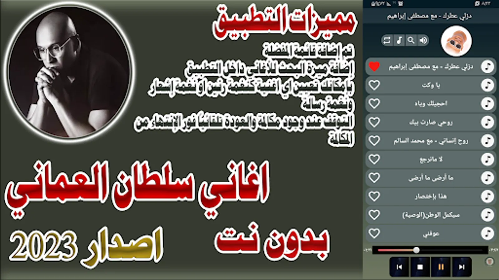 The application of Sultan Al Omani songs without internet is an application that includes all the new, exclusive and old songs of Sultan Al Omani. If you are a fan of Sultan Al Omani songs and are looking for an application that contains exclusive Iraqi songs by Sultan Al Omani, then you are in the right place. So what are you waiting for, download the Sultan Al Omani Songs Dandanha 2023 application and enjoy Sultan Al Omani songs without the internet.