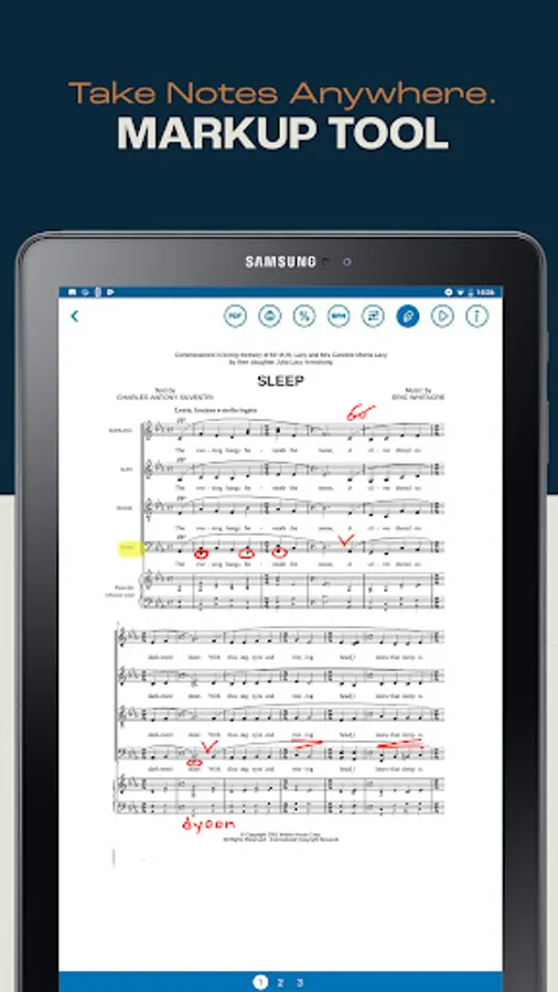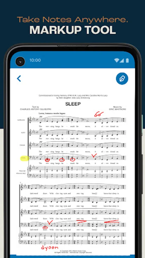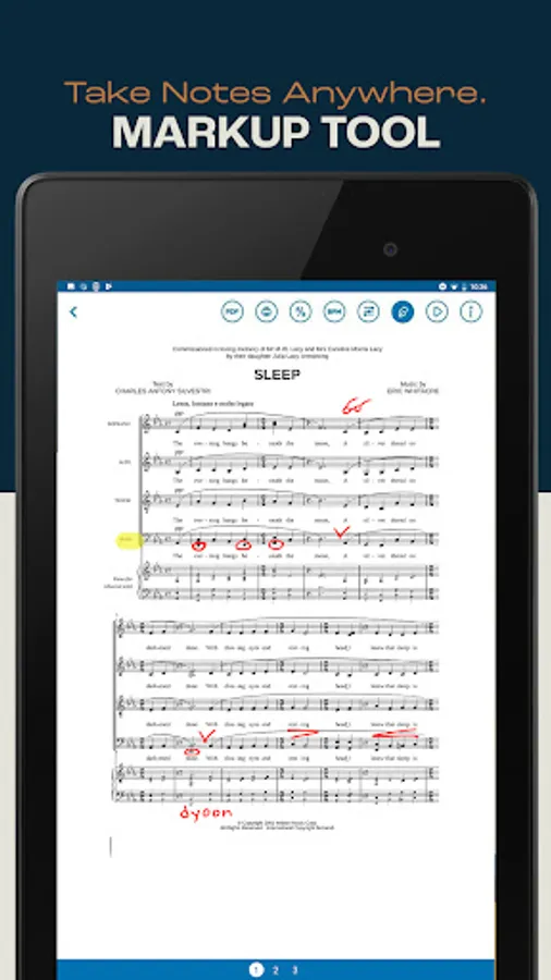 • Mark up your arrangements & scores with the built-in pen & text tools