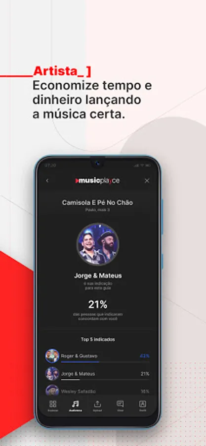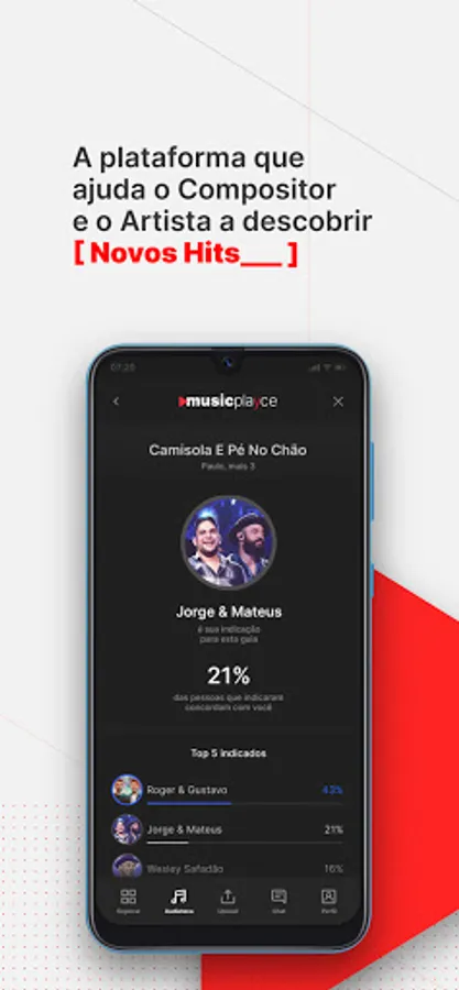 We provide the public with the opportunity to truly participate in the career of their idols, listening and indicating new songs and, thus, participating in the choice of the next successful songs in the market.