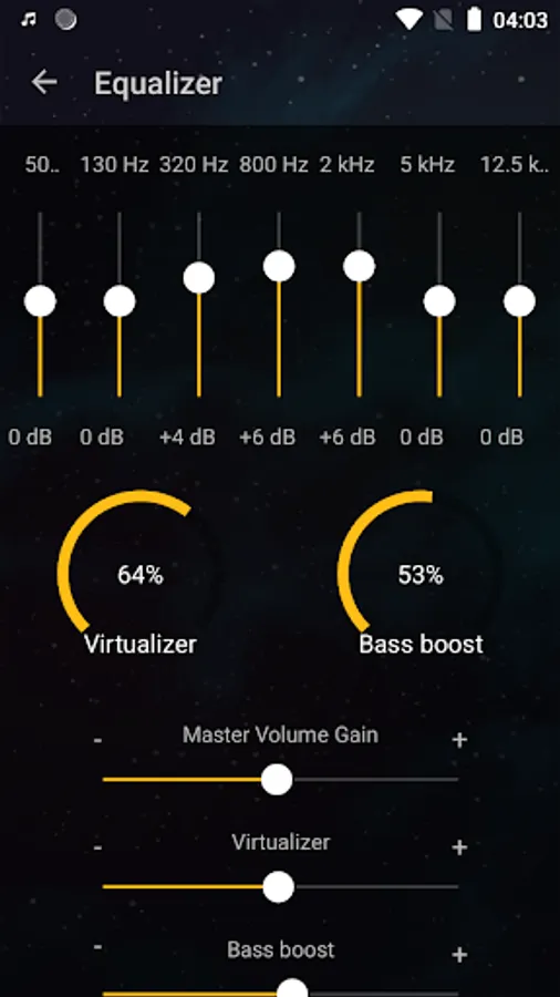 9. 7-band equalizer with powerful bass and virtualizer with reverb settings.