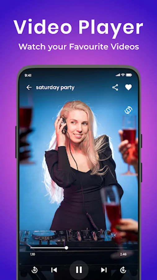 • Video player support to video formats like MP4, 3GP, MKV, etc.