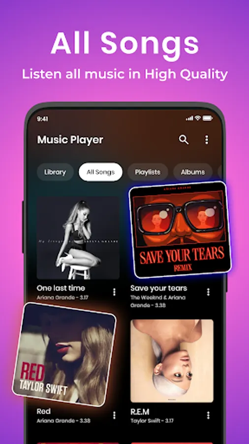 • Songs player, audio player, mp3 file player with high quality.