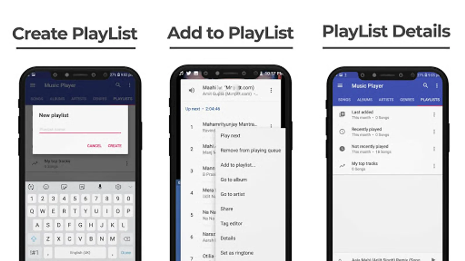 π΅ Create a new playlist, edit or delete the old playlist. Add albums, artist, and songs directly to the playlist.